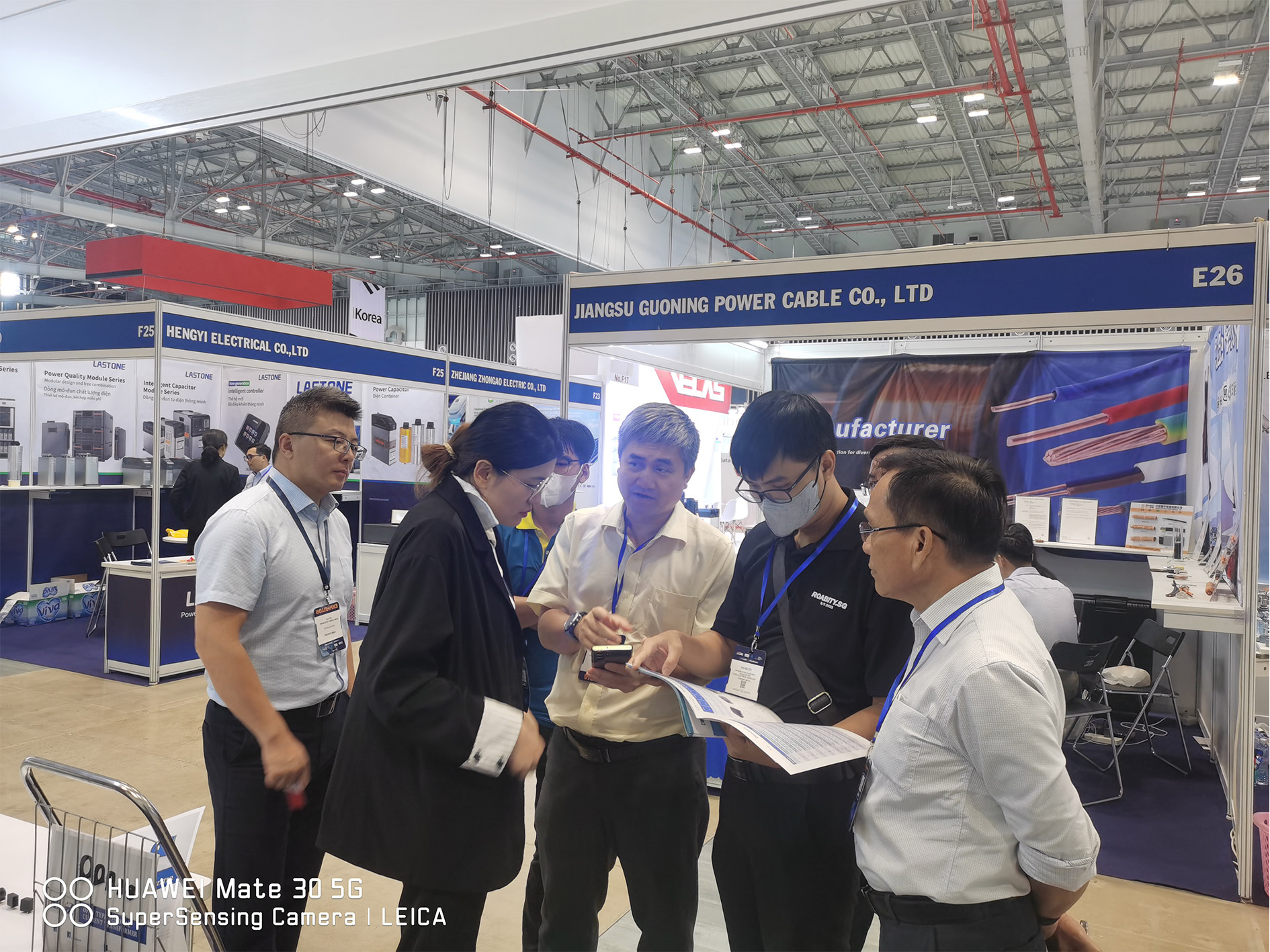来自越南当地客户来我司摊位洽谈我司相关产品的细节,会谈后双方愉快地合影留念。